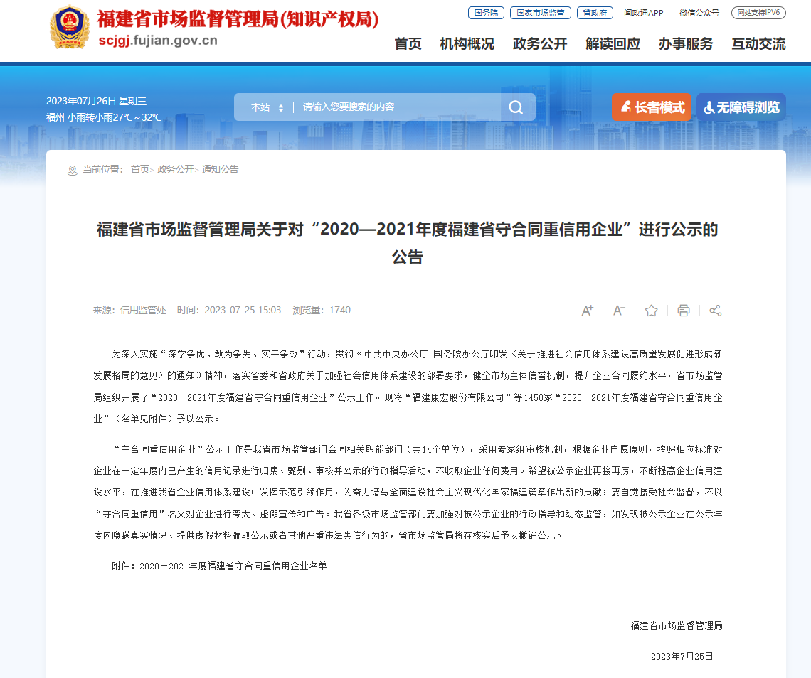 福建廣生堂藥業(yè)股份有限公司 榮獲“福建省守合同重信用企業(yè)”榮譽(yù)稱號(hào)