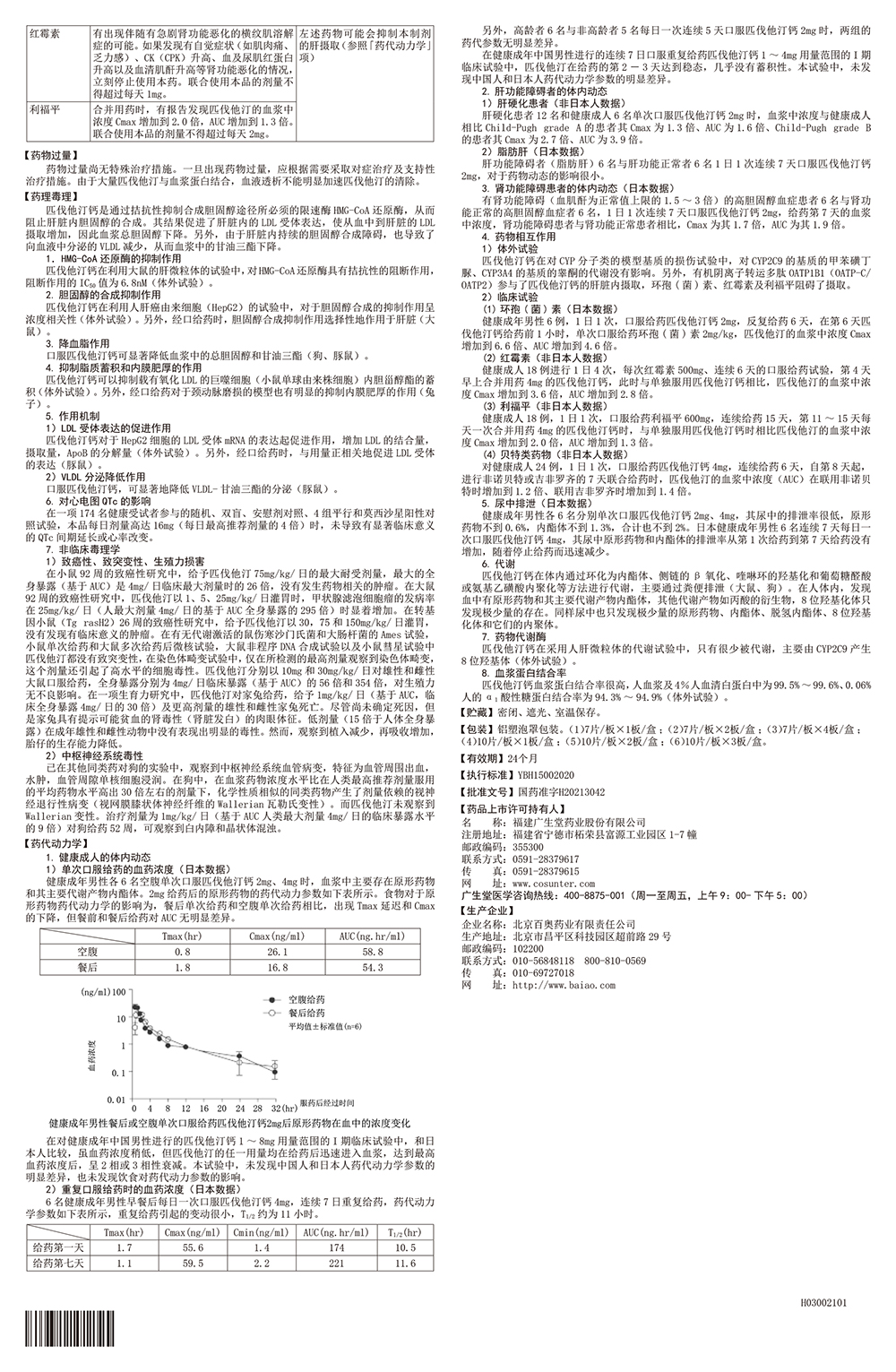 | 用法用量: | 通常,成人 1 日 1 次,每次口服 1 ~ 2mg。 按照年齡和治療反應(yīng)適宜增減劑量,在 LDL- 膽固醇降低不充分的情況下可以增量,每日最大給藥量為 4mg。 | ||