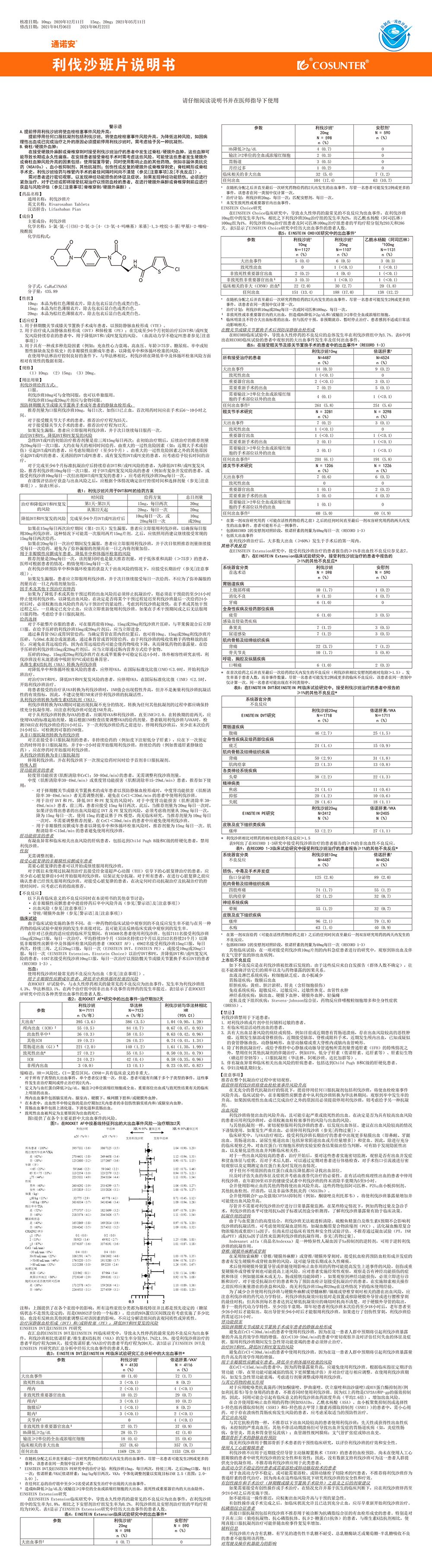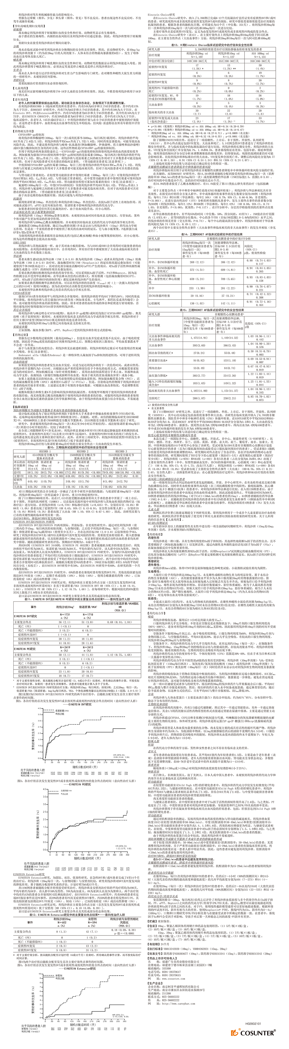 | 藥品名稱: | 通用名稱:利伐沙班片 | ||
